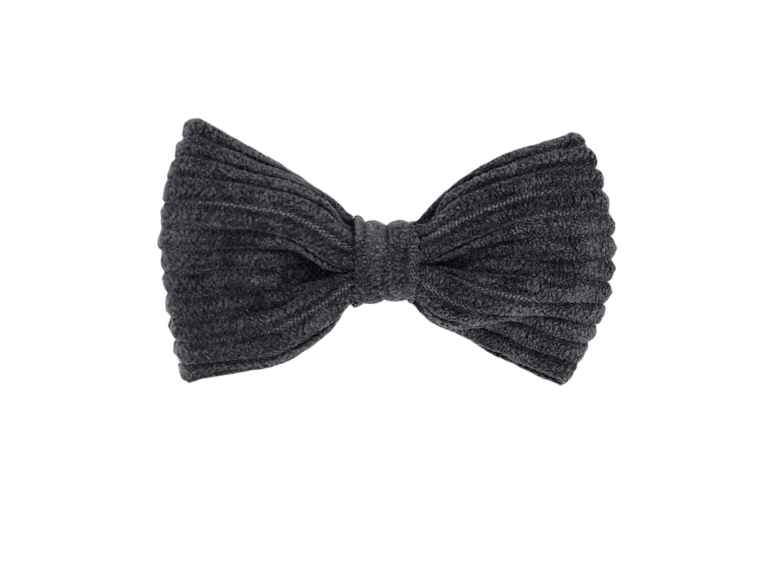 Vlinder haarstrik donker grijs ribstof alligatorspeld zonder tandjesVlinder haarstrik donker grijs ribstof alligatorspeld zonder tandjes- Normale prijs