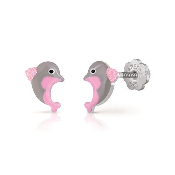 Zilveren kinderoorbellen dolfijn grijs/roze |schroefsluiting LapetraZilveren kinderoorbellen dolfijn grijs/roze |schroefsluiting Lapetra- Normale prijs