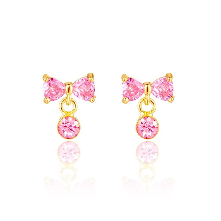 Zilveren kinderoorbellen gold plated roze strikjes | KikiZilveren kinderoorbellen gold plated roze strikjes | Kiki- Normale prijs