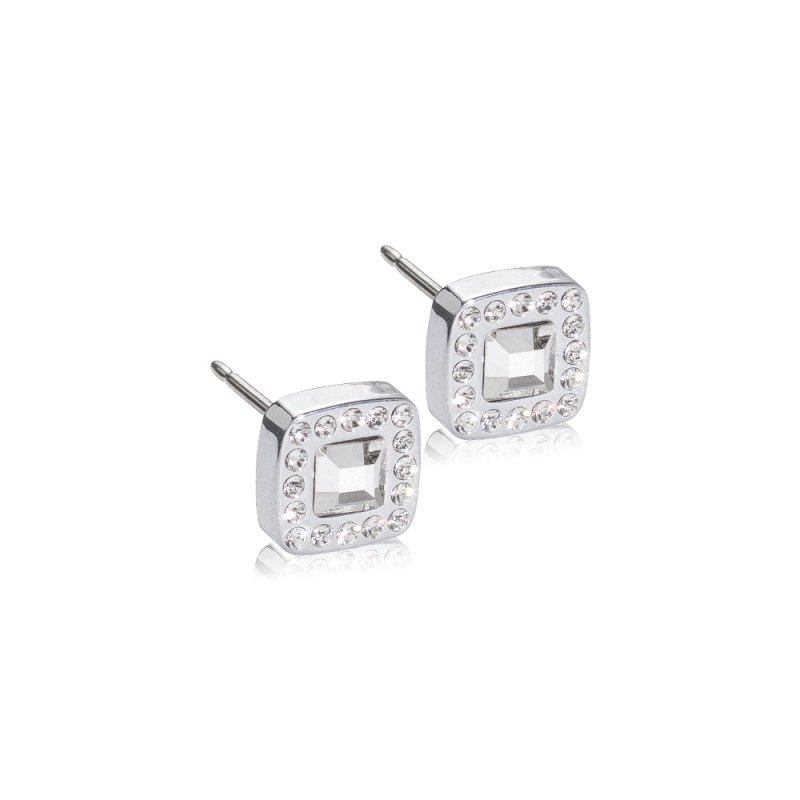 Oorbellen Blomdahl titanium vierkantje 8 mm. met kristalletje (incl. achterkantjes) *Oorbellen Blomdahl titanium vierkantje 8 mm. met kristalletje (incl. achterkantjes) *- Normale prijs