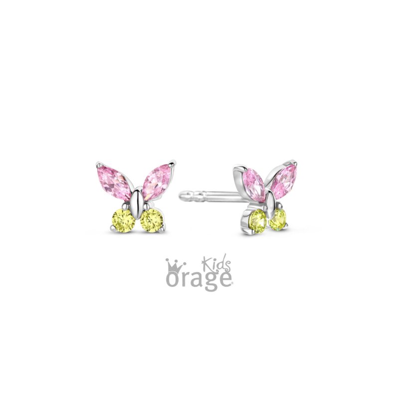 Silberne Kinderohrringe Schmetterling rosa/gelb Orage Kids