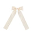 Ob geflochtener Zopf, tiefer Pferdeschwanz oder offenes Haar – diese cremefarbene Schleife verleiht jedem Look eine sanfte, stilvolle Note.
