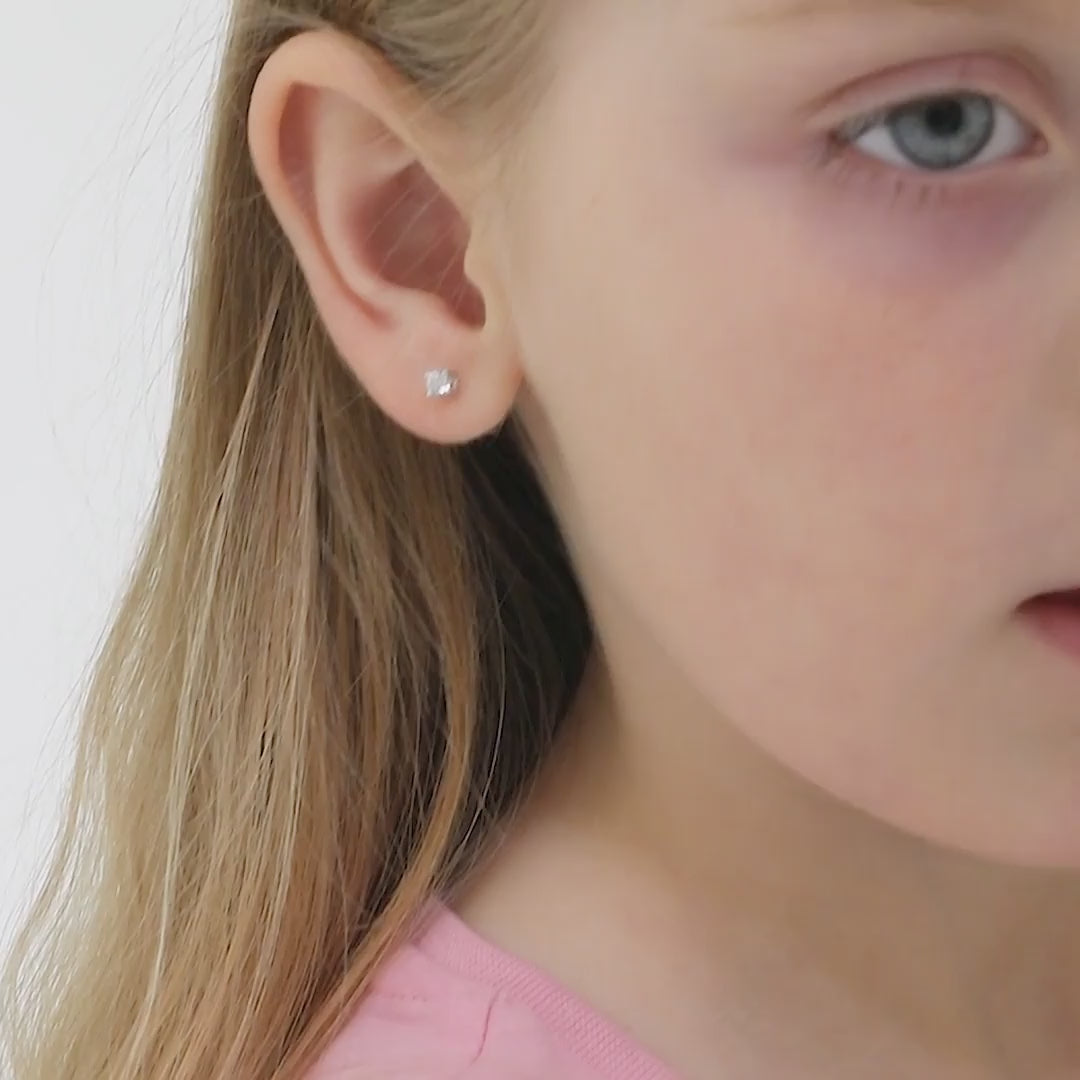 Die Ohrringe sind aus 925er Sterlingsilber gefertigt und mit einem klaren Zirkonia-Stein besetzt. Durch ihre kompakte Größe wirken sie dezent und sind perfekt für kleine Kinder oder alle, die kleine, unaufdringliche Ohrringe bevorzugen.