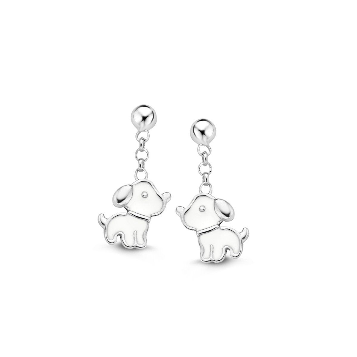 Silberne Kinderohrringe Hund weiße Anhänger Naiomy Princess