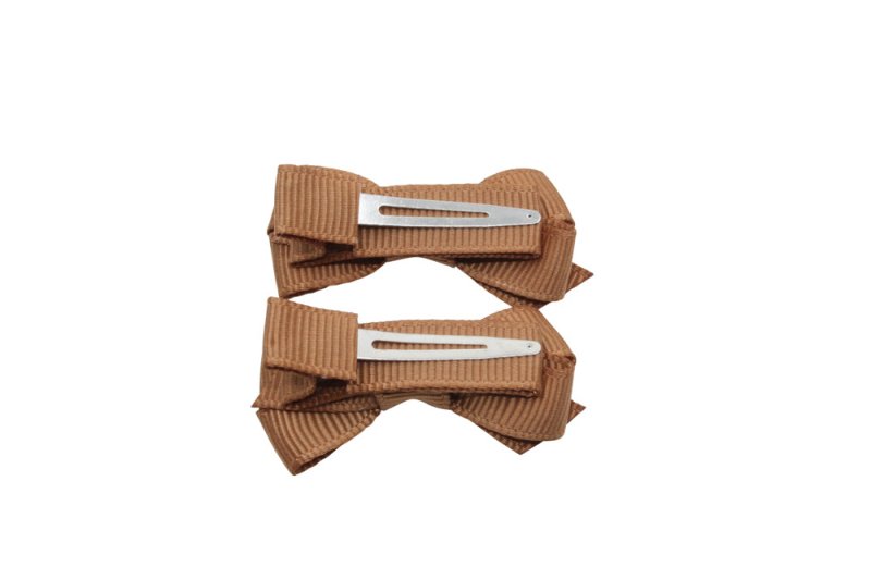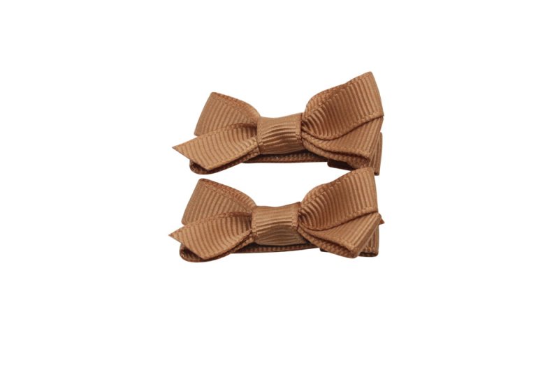 Setje kleine alligator haarspeldjes met strikje chipmunck bruin - Staartjes en Strikjes