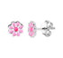 Silver children's earrings with pink flowers