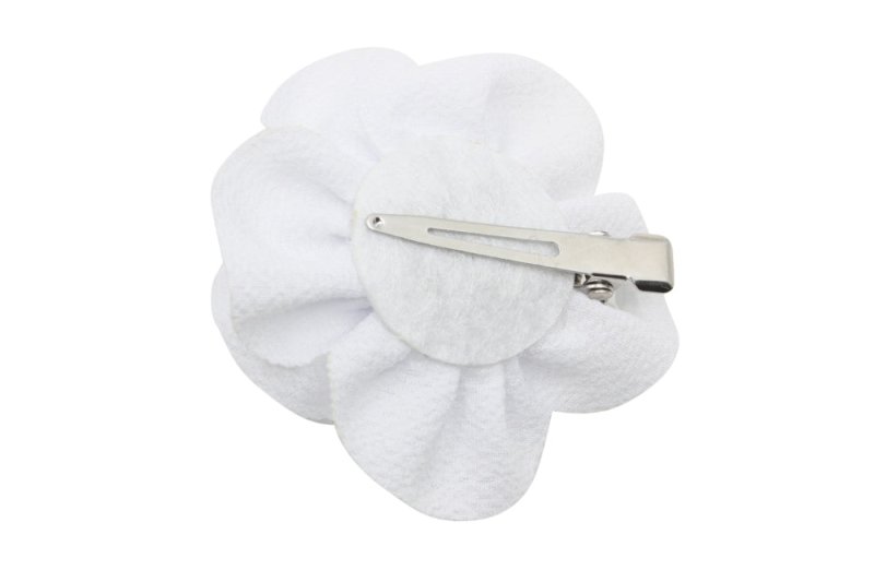 - Het haarbloemetje is ongeveer 5,5 cm. in doorsnede en is bevestigd op een alligatorspeldje (zonder tandjes) van 3,5 cm.