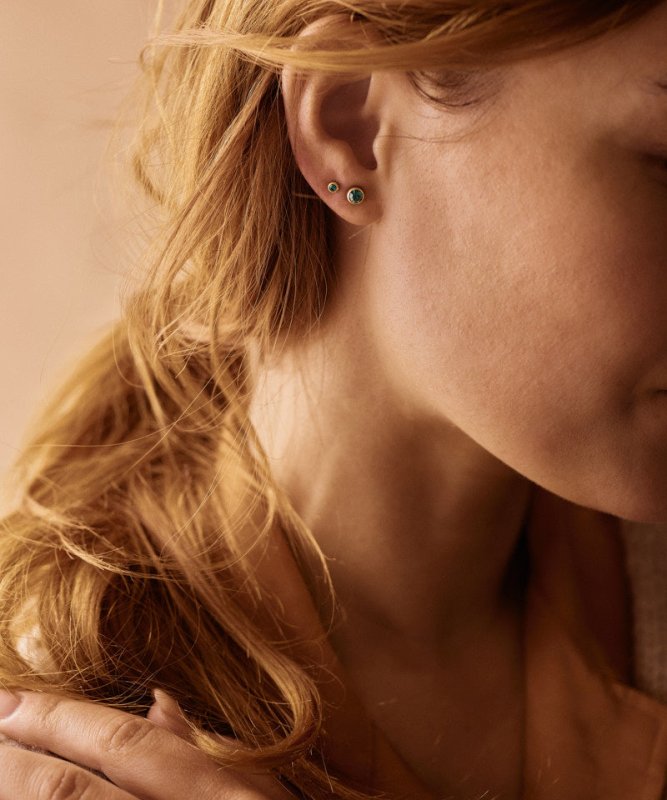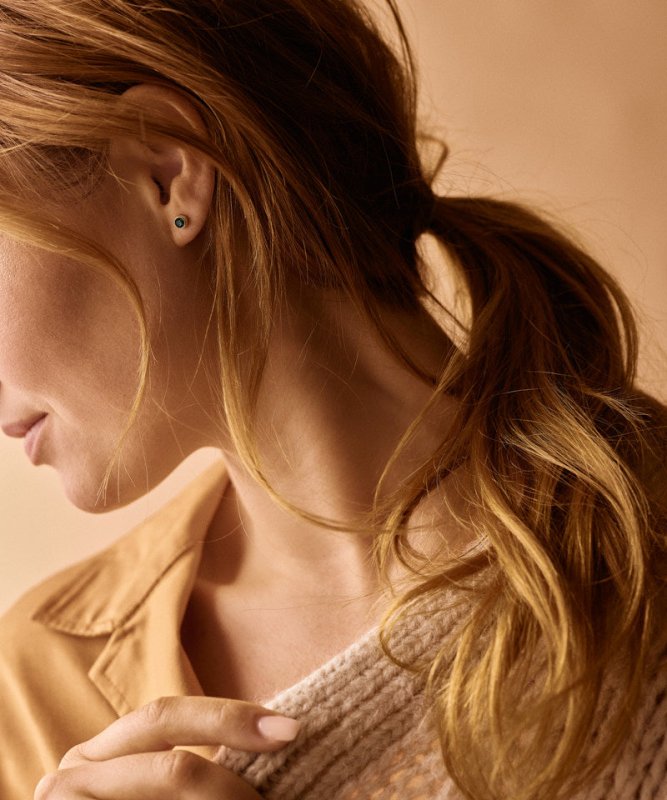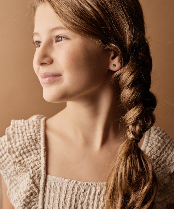 Oorbellen Blomdahl titanium knopje 5 mm. goudkleurig emerald green (incl. achterkantjes)