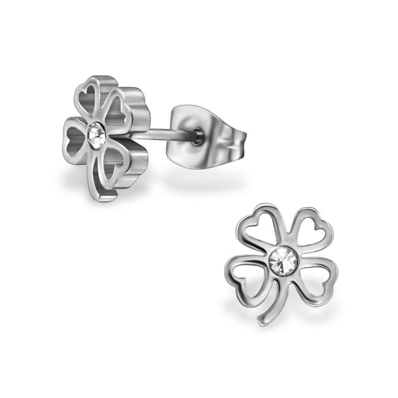 Oorbellen chirurgisch staal klavertje vier met kristalletje