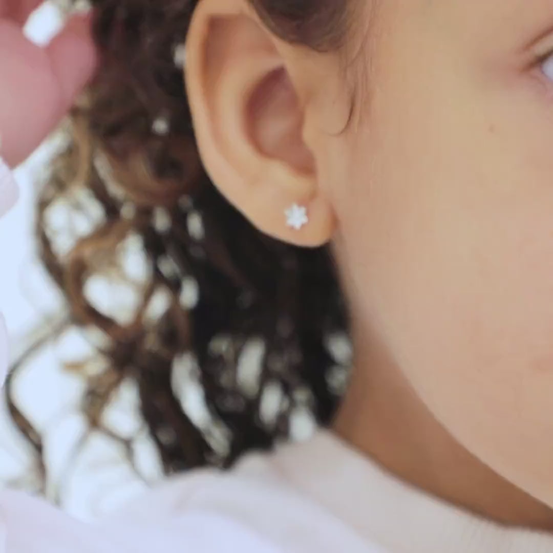 Deze zilveren kinderoorbellen in de vorm van een klein bloemetje zijn een fijne keuze voor wie op zoek is naar iets subtiels en tijdloos. Door het compacte formaat sluiten ze netjes aan op het oor en zijn ze zeer geschikt voor dagelijks dragen. De oorbelletjes maken deel uit van onze collectie zilveren kindersieraden van In Season Jewelry, een merk dat bekendstaat om zijn zorgvuldige afwerking en fijne kwaliteit.